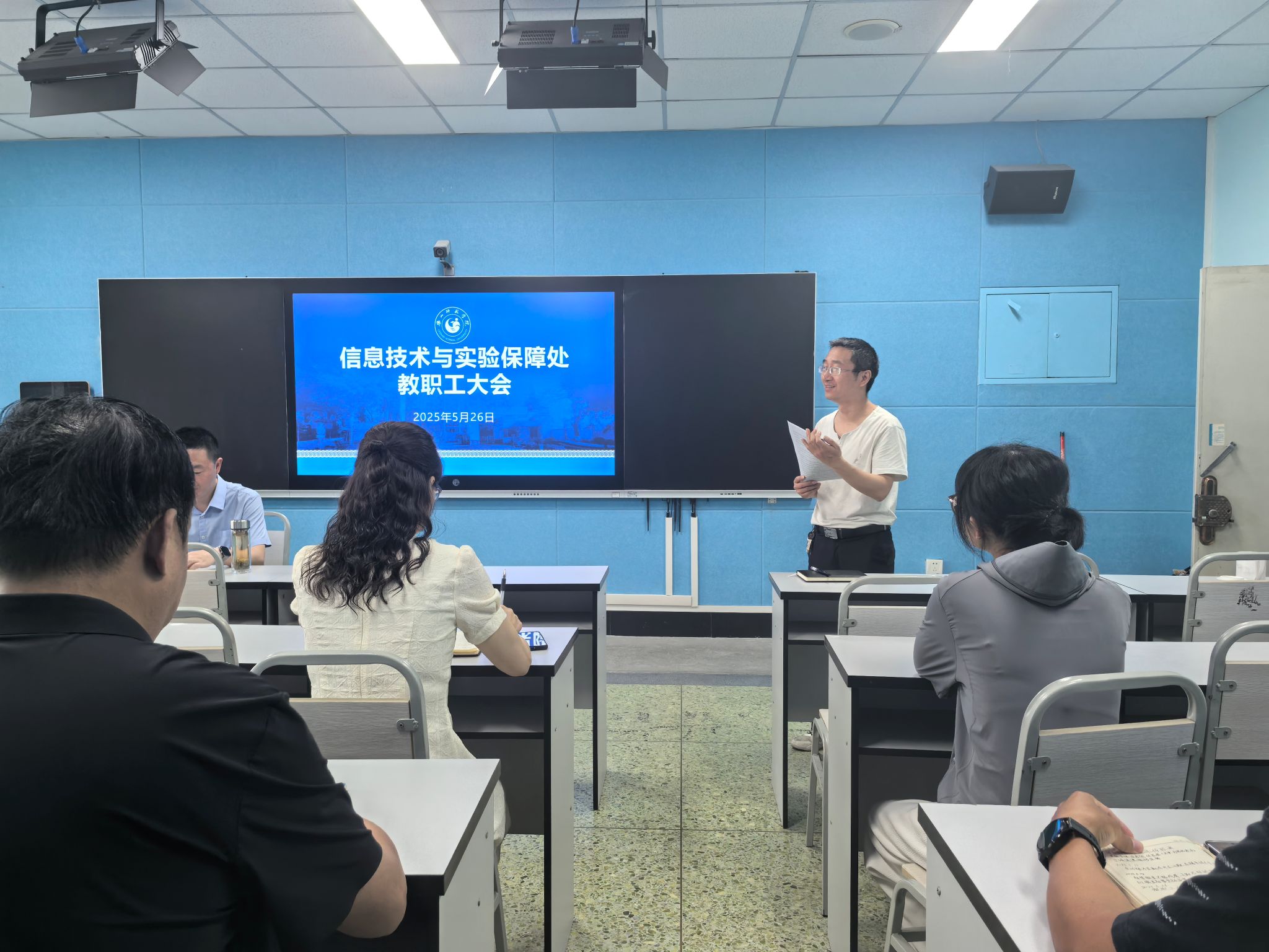2025年5月26日,信实处全体教职工齐聚弘毅楼405A,参加教职工大会,深入学习“党的二十大、二十届三中全会精神及省委、市委全会精神”。本次大会由刘才铭处长主持。