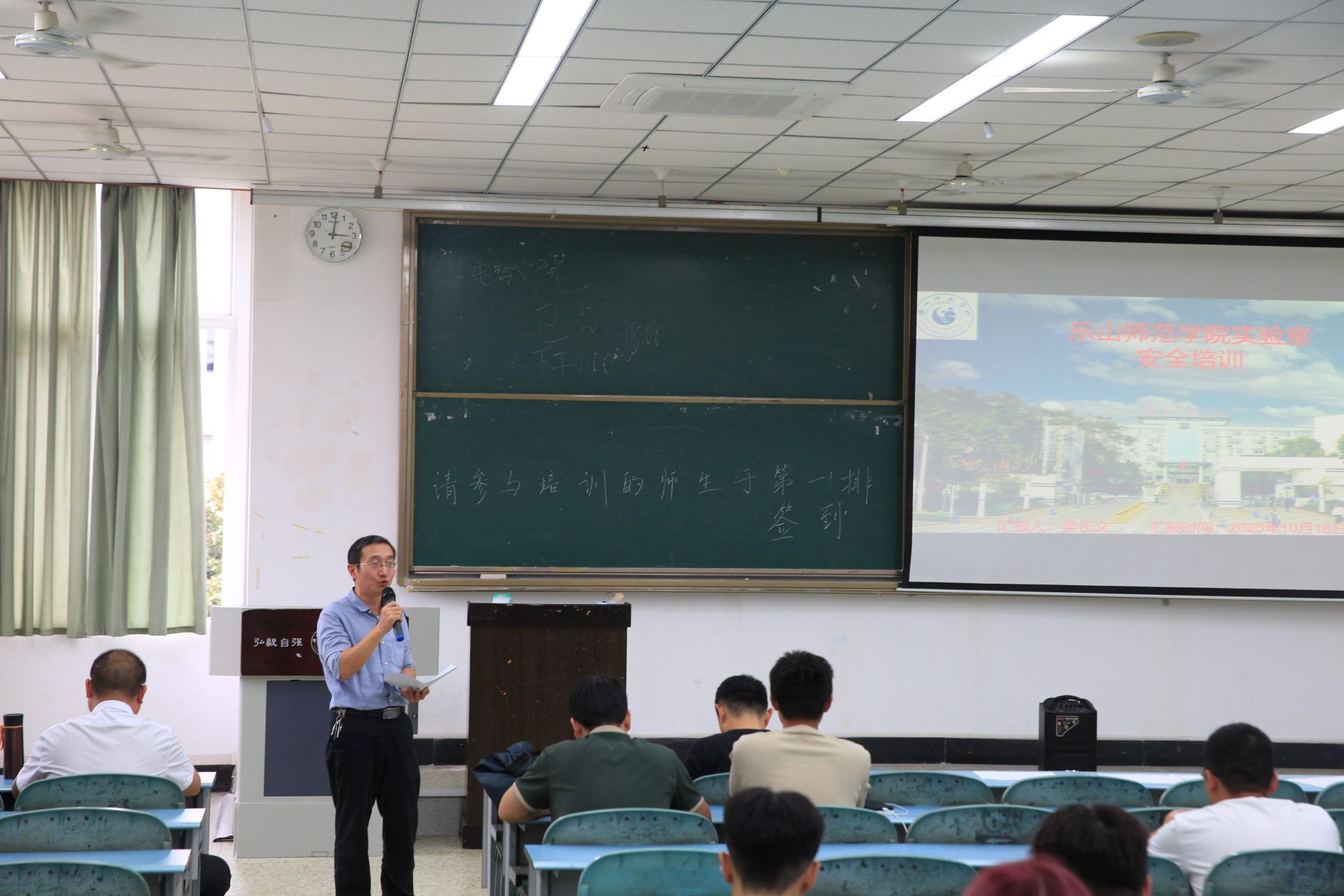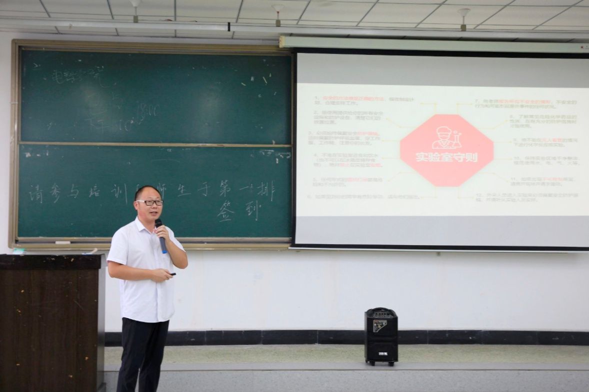 安全培训由埃德伯格公司的吴长文工程师主讲,他围绕实验室守则、操作规程、个人防护、急救、消防、用电以及特种设备7个方面的内容,以图文并茂的方式给大家作了专题培训。