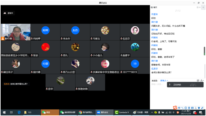 12月24日及25日晚6点30分,美姑县洪溪学区中小学教师教育信息化线上培训第四次、第五次培训先后开课,主讲教师分别为教师教育学院田密娟老师和付蓉老师。这两次培训主题均为“微课视频的后期编辑技术和操作”,授课形式均采用腾讯视频会议结合超星课程平台的方式进行。