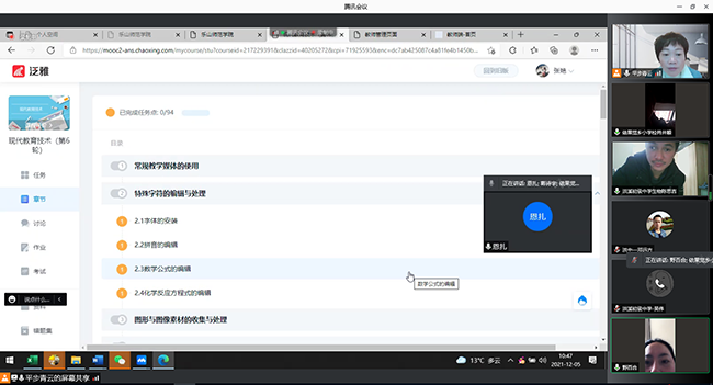 这次培训课的主要内容是超星网上课程平台的使用。张艳老师分别就手机端和电脑端介绍了如何下载学习软件,如何在学习通平台注册和如何登录超星学习平台;并基于超星学习平台,详细地介绍了《现代教育技术》课程的学习流程。最后张艳老师鼓励学员要利用空余时间到平台上多学,不懂的问题多在讨论区留言。