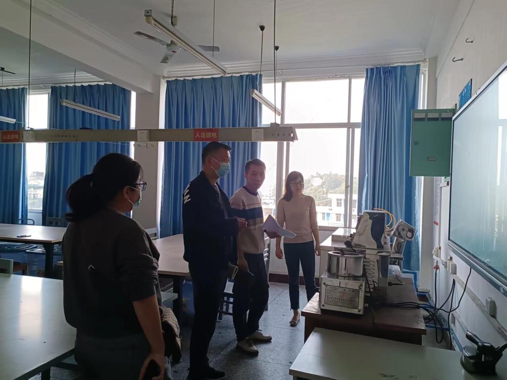 为保障师生生命安全、校园财产安全,确保开校后实验教学正常开展,信实处联合实验室安全专家组成员于10月18日下午2:30,对松柏楼、旷怡楼、宁静楼、化生实验楼、实训楼开展了实验室安全检查。本次检查任务为消防安全和用电安全,检查组选择易燃物多、用电实验多的实验实训区域为重点检查对象,逐间走访,认真排查。