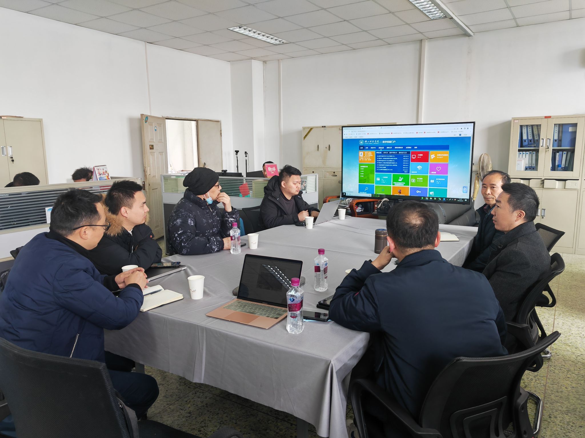 本网讯(文、图/崔学海)2月24日上午,绵阳城市学院网络与信息服务中心副主任代明等一行6人来我校,考察交流数字校园建设情况。我校信息技术与实验保障处负责工作的副处长刘才铭、副处长胡军,数据信息中心科长余凤池等在弘毅楼507室与来宾进行了座谈。