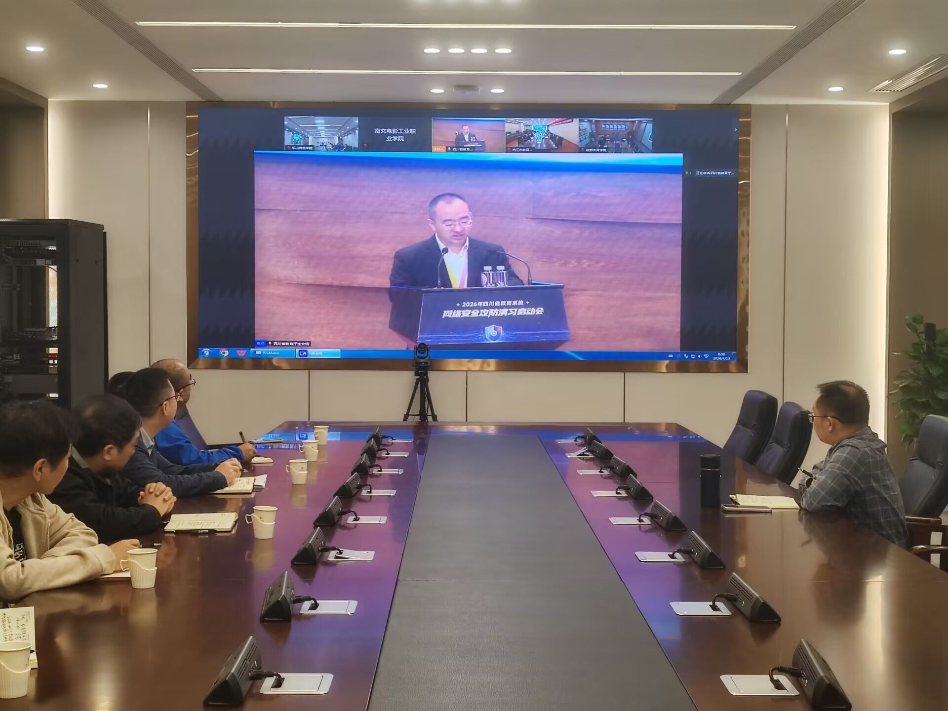 4月13日上午8时30分,2026年全省教育系统网络安全攻防演习启动会以线上线下结合形式召开。副校长农向、信实处处长刘才铭、副处长王德明及相关技术骨干,在弘毅楼207会议室集中参会。